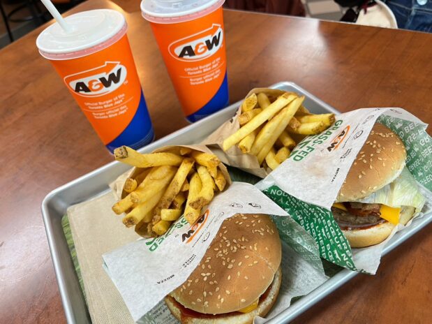 13:30 昨日の疲れでずいぶん長い間寝てしまいました。外は曇り空。まずは朝食(昼食)にA&Wでバーガーを食べました。店の前で、昨日オーロラツアーで一緒だった方にお会いでき、お話できて嬉しかったです。