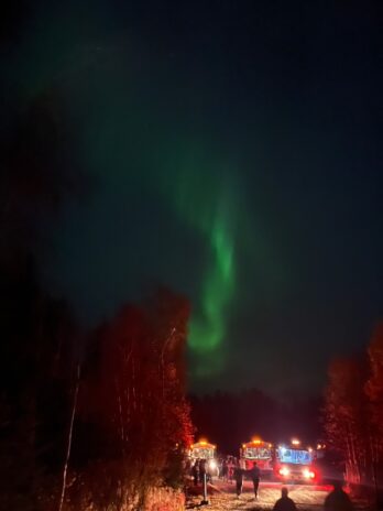 22:00 最後のオーロラ鑑賞ツアーへ。本日はお天気も良く、行きのバスからオーロラが見えました。結局最初にバスから見たオーロラが1番強い発生でしたが、その後も3:30くらいまで、日本人の方々とわいわいオーロラを探すのは楽しい時間でした。レンタルしたカメラでも綺麗に撮影ができ、大満足です。