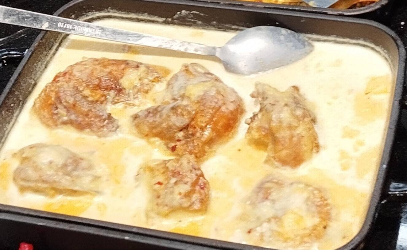 シュクメルリ (Shkmeruli) 日本でも有名になった、鶏肉のニンニククリームソース煮。本場の味は濃厚で、パン(ショティ)との相性が抜群です。