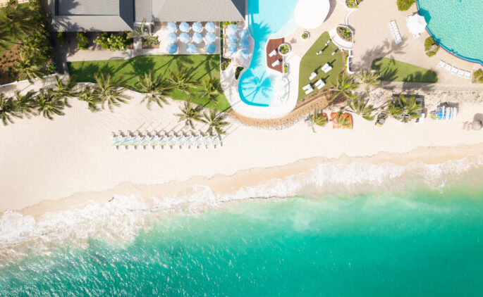 大人専用。GBRのキャッツアイビーチに面し、専用ラウンジ・無制限島内送迎付き。ハネムーンカップルに最適。