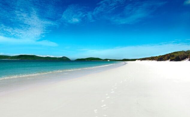 ホワイトヘブンビーチは、TripAdvisor「世界ベストビーチ」1位を獲得した白砂7kmのビーチ。98%以上の純白シリカサンドとターコイズブルーの海のコントラストは圧巻です。