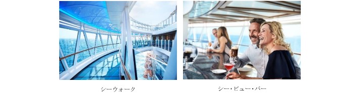 トップデッキの船体右舷側から 8.5メートル以上張り出しているガラス張りの通路から、約40メートル下に広がる海などのドラマチックな景色をお楽しみいただけるこの船の最も特徴的な施設です。シー・ビュー・バーではドリンクを片手に、スリル満点の眺めをご堪能いただけます。