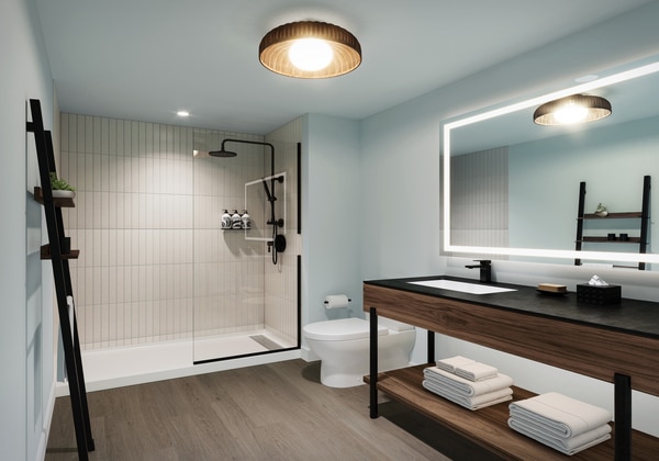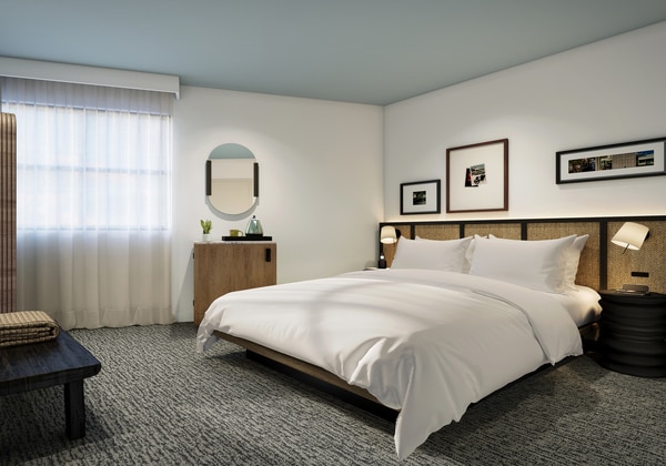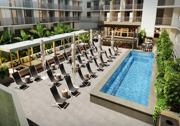 シックなミッドセンチュリー モダンな客室で、プライベートラナイからの眺めで目が覚めたら、ザ バックヤードのプールサイドでリラックスしよう。ここは緑に囲まれたオアシスで、軽食やドリンクがずっと楽しめるよ。